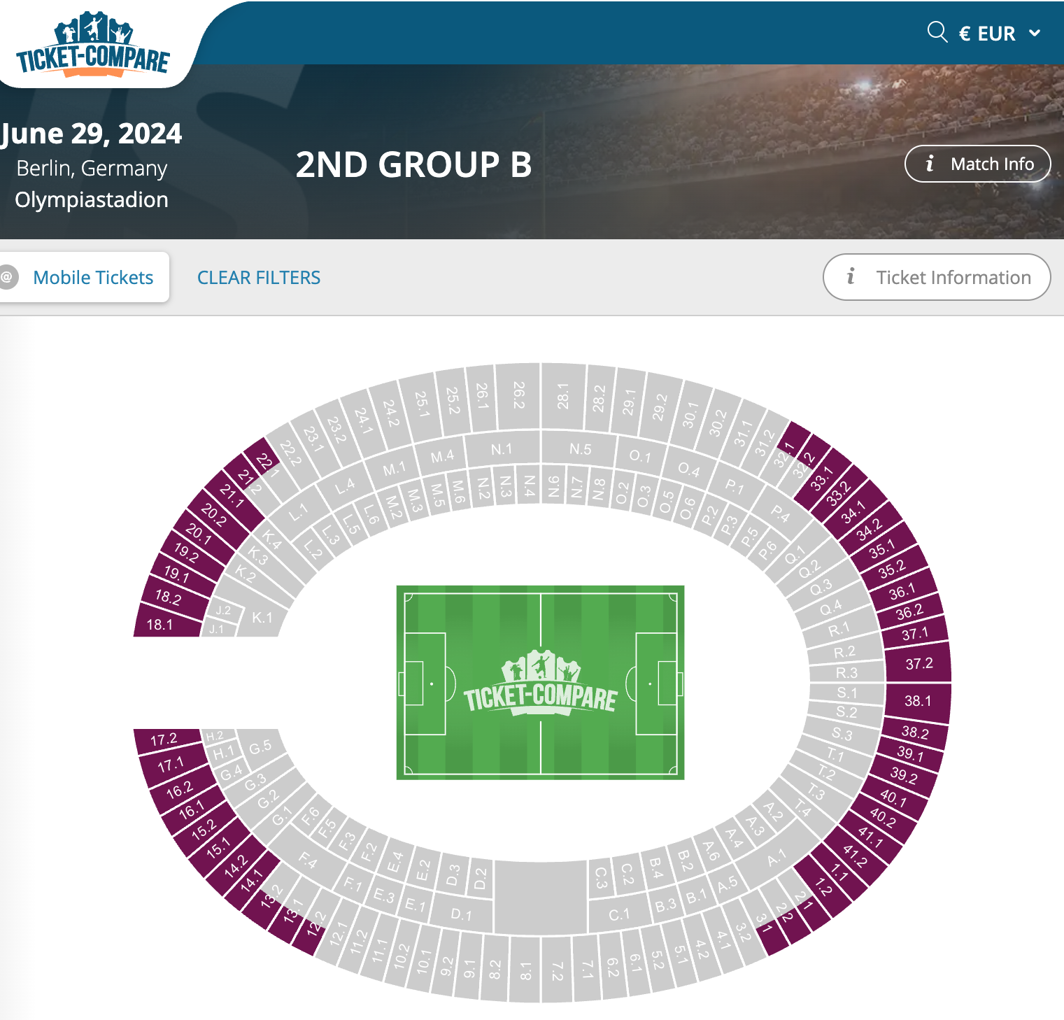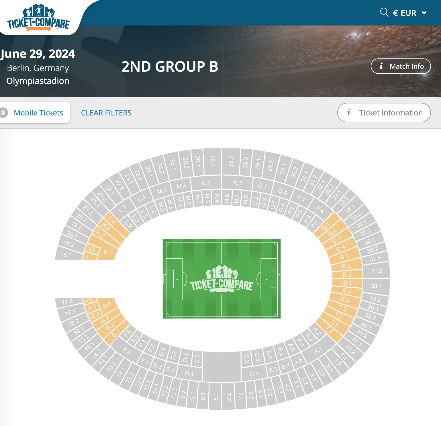 Naturally, secondary market prices will be different to face value. At the time of writing, one week into the tournament, these were the cheapest secondary market tickets for the Berlin Quarter-Final on 29 June: