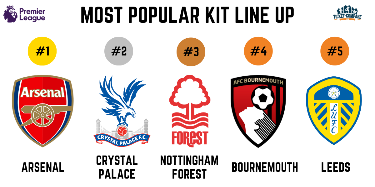 According to data from the football kit archive we see that people love the new Arsenal kit line up giving it a rating of 12.4/15. The black third kit, as well as the red home kit, were featured in our top 5 kits list making arsenal the clear winner of the most fashionable kit lineup title. Crystal Palace and Nottingham Forest ranked 2nd and 3rd respectively with their great mix of simple and wild kits in their lineups.